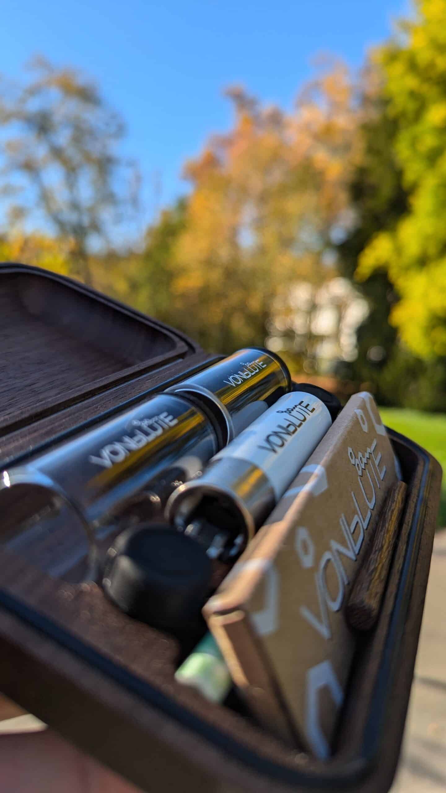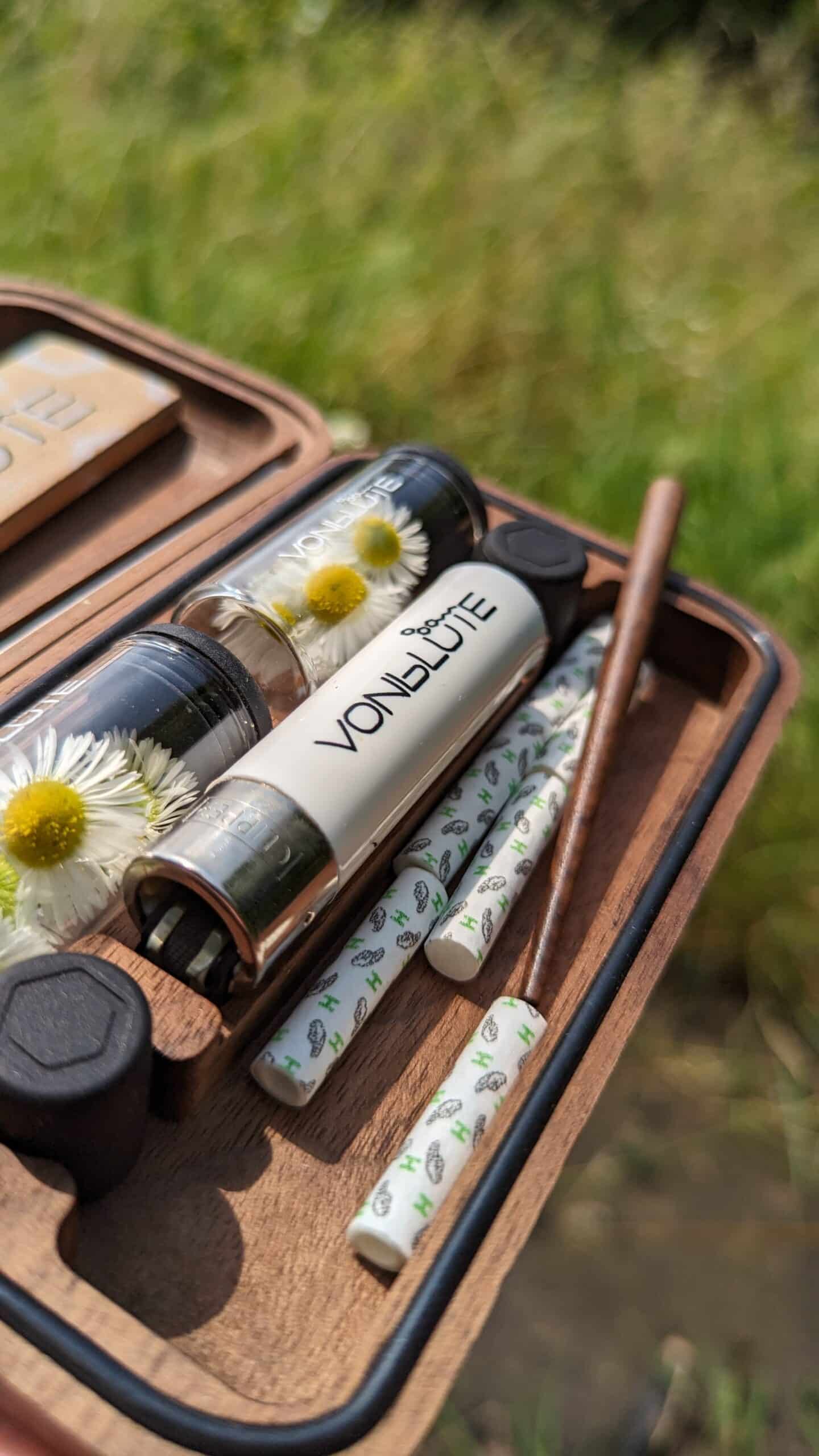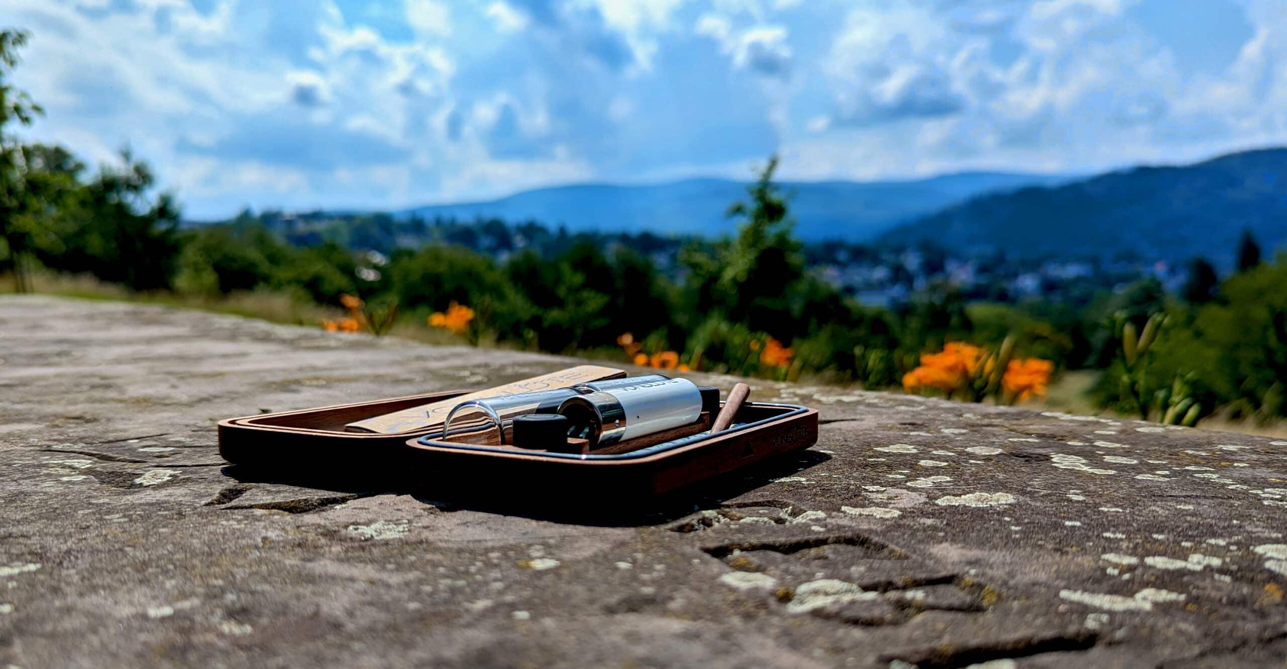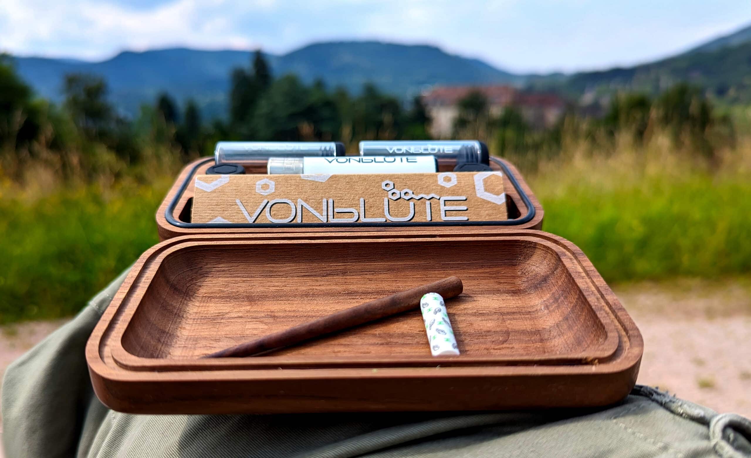 VONbLÜTE Pocket Rolling Trays – handgefertigte Premium-Drehetuis aus edlem Holz, die Funktionalität & Design in kompakter Form perfekt vereinen. Unsere