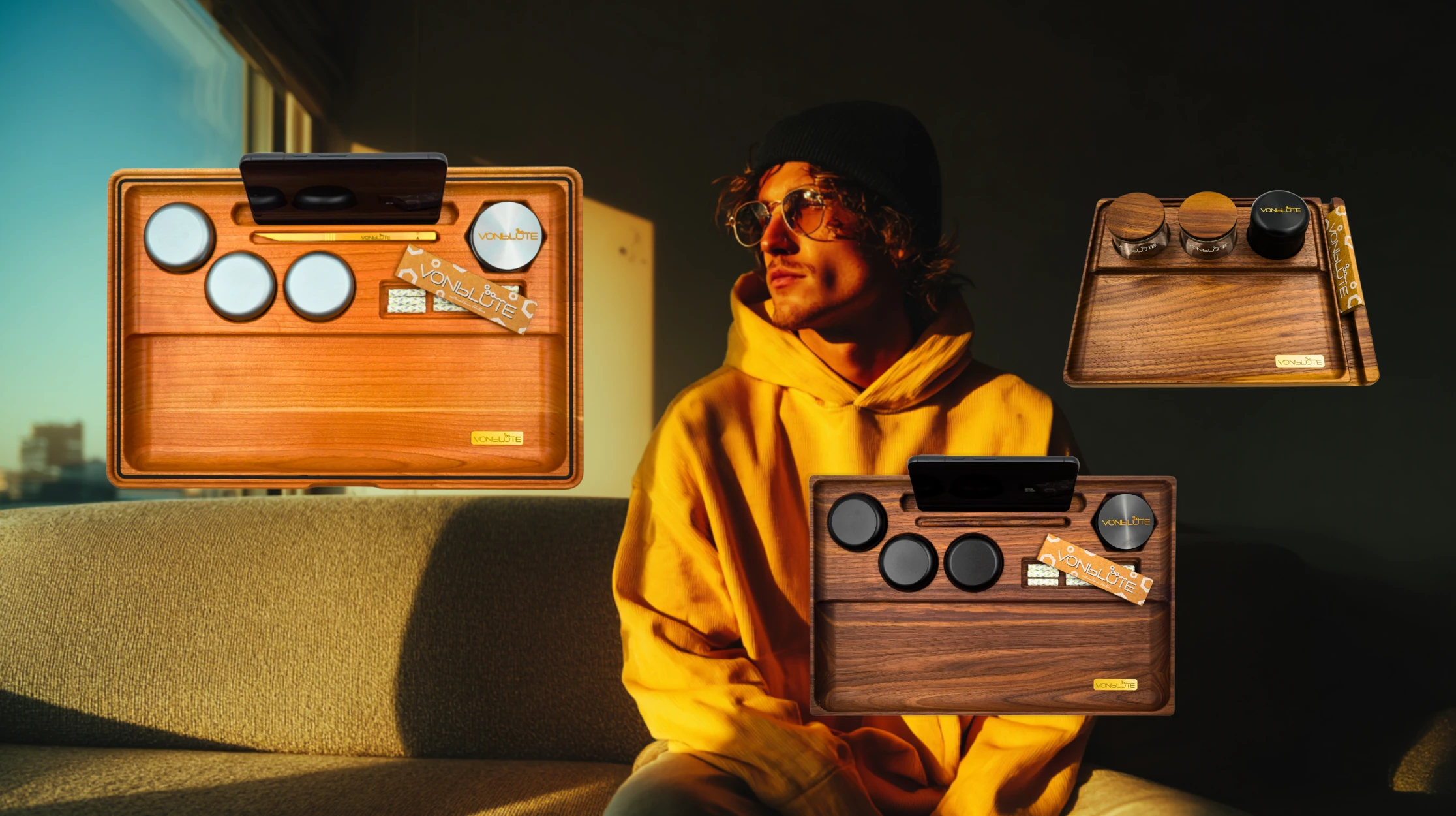 Im Rolling Tray Konfigurator wählst du Holz, Oberfläche und Add-ons. Jede Änderung siehst du live – Schritt für Schritt zu deinem individuellen Build. Entscheide dich für Chill One, Dab ’n Roll® oder Dab ’n Roll® XT und bring dein Setup aufs nächste Level.