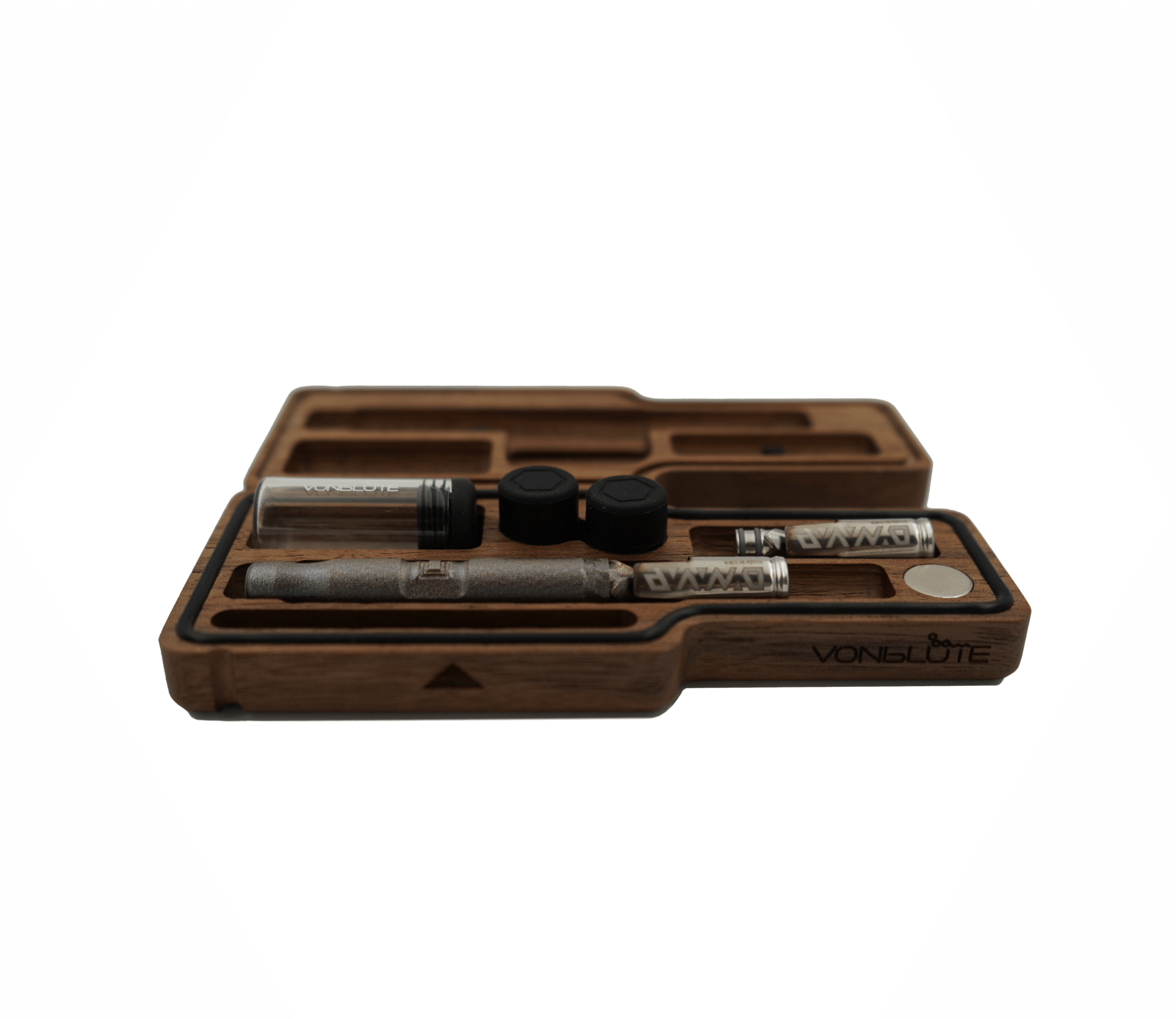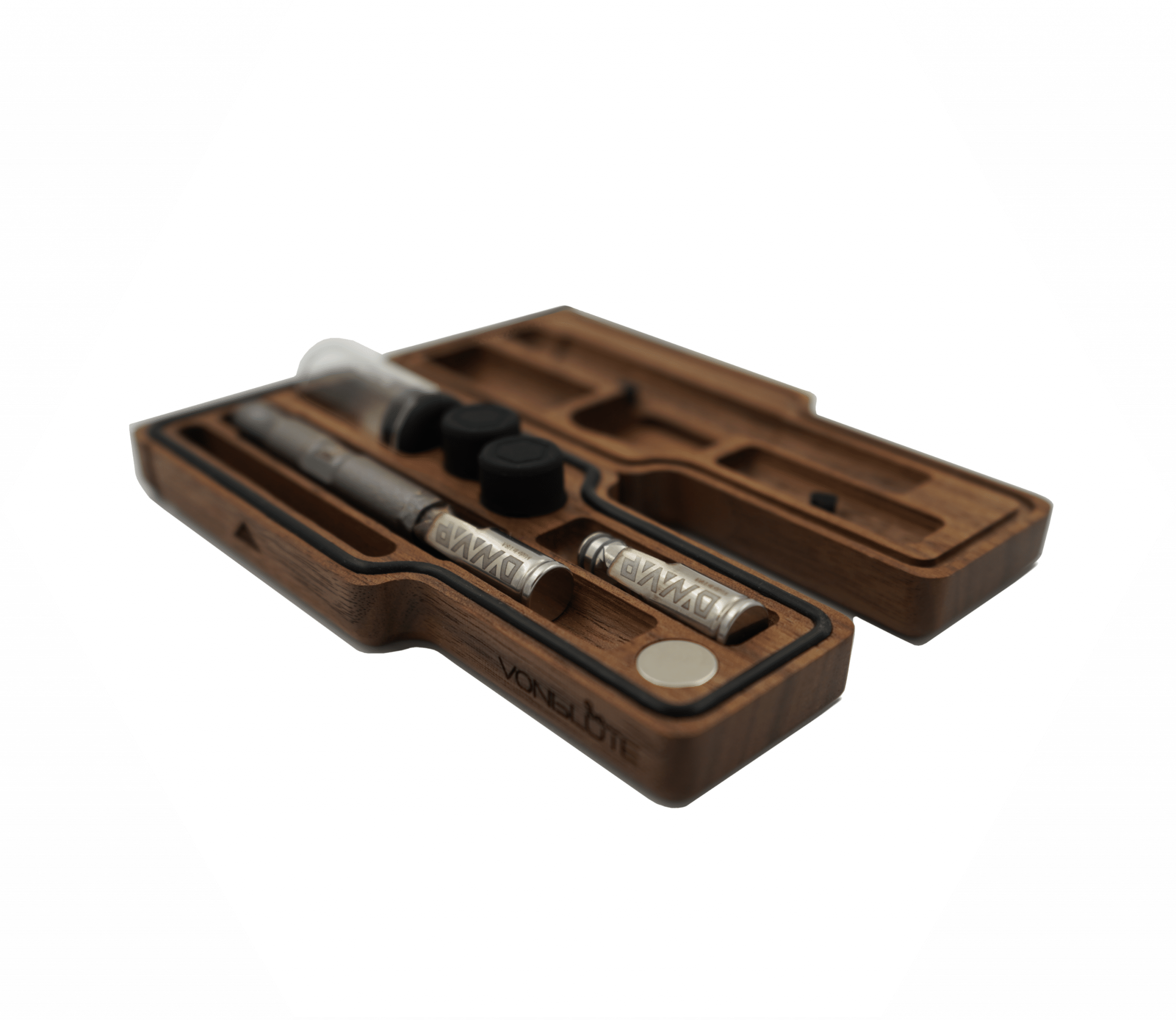 Das VONbLÜTE Vapetui® Dynastyle ist die ultimative Dynavap Aufbewahrung aus handverlesenem amerikanischem Nussbaumholz. Entwickelt für Kenner, die auf Qualität und smarte Features setzen, vereint es Präzision, Funktionalität & luxuriöses Design.
