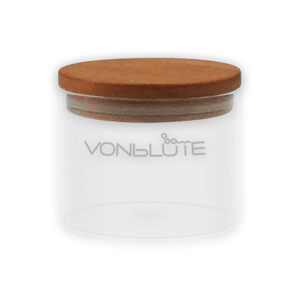 Glasbehälter mit Holzdeckel – Premium Borosilikatglas | VONbLÜTE® Weed und Extrakte optimal lagern – Edler Glasbehälter mit Holzdeckel von VONbLÜTE®
