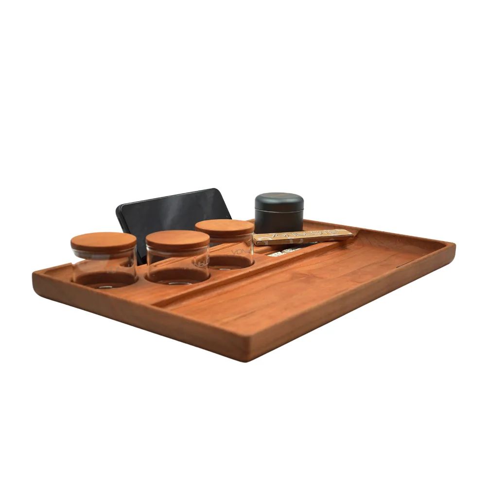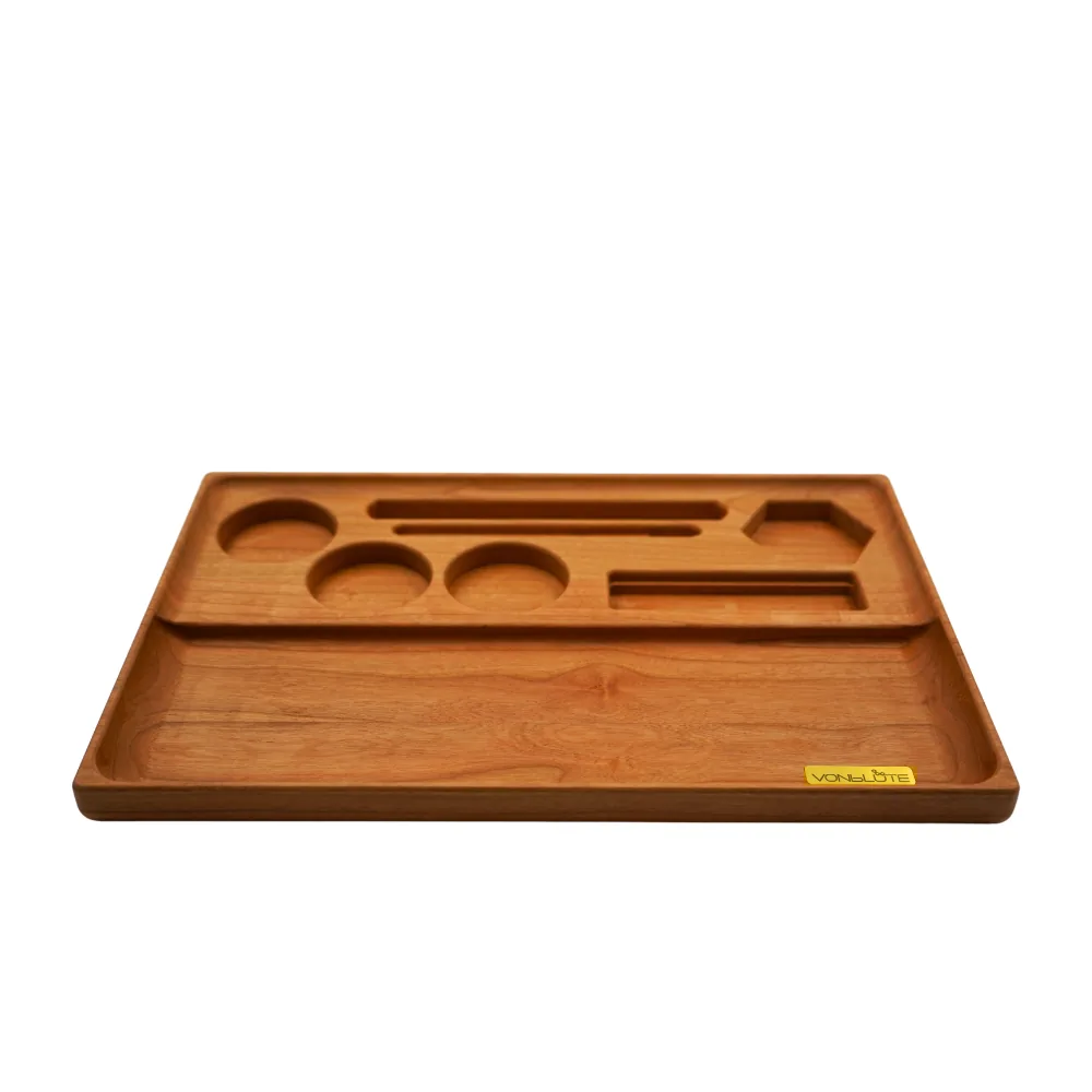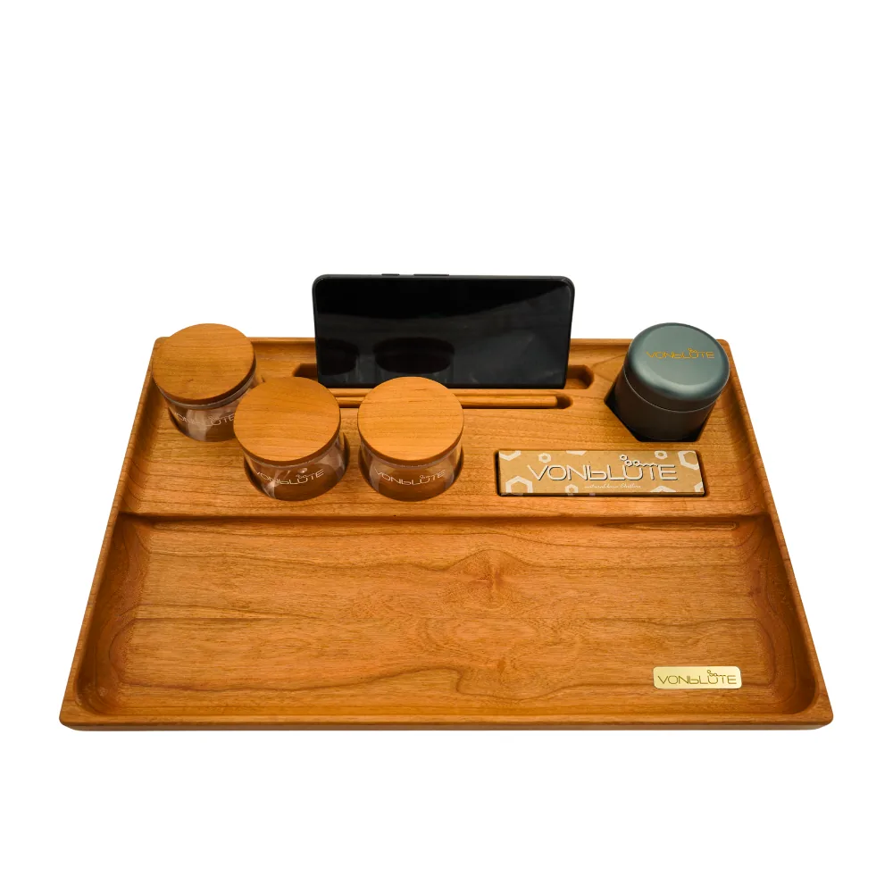 Hinter dem Design steckt echte Substanz: Gefertigt aus massivem Holz, ausgestattet mit durchdachten Details, ready für deine Lieblings-Tools. Hier trifft drehfreundliche Aufteilung auf Manufakturqualität – und macht dieses Rolling Tray aus Kirschholz zu deinem Go-to Tray für jede Session. Wer ein Rolling Tray kaufen will, das Charakter und Präzision vereint, findet hier sein Upgrade.