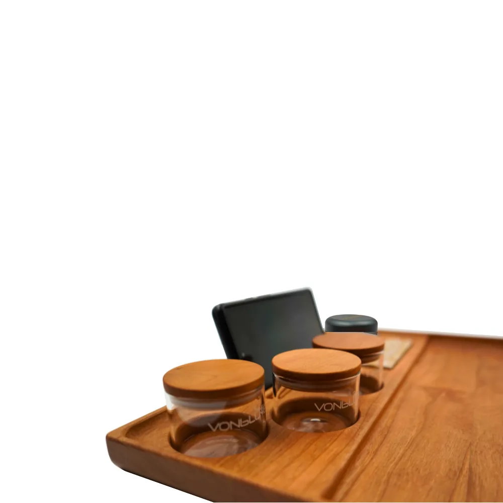 Du willst es noch individueller? Dann gestalte dein persönliches Dab ’n Roll® Setup im VONbLÜTE® Custom-Konfigurator: Wähle aus edlen Holzarten, besonderen Grinder-Styles & passendem Zubehör. So wird dein Tray zum Statement – 100 % Vibe, 100 % Premium.
