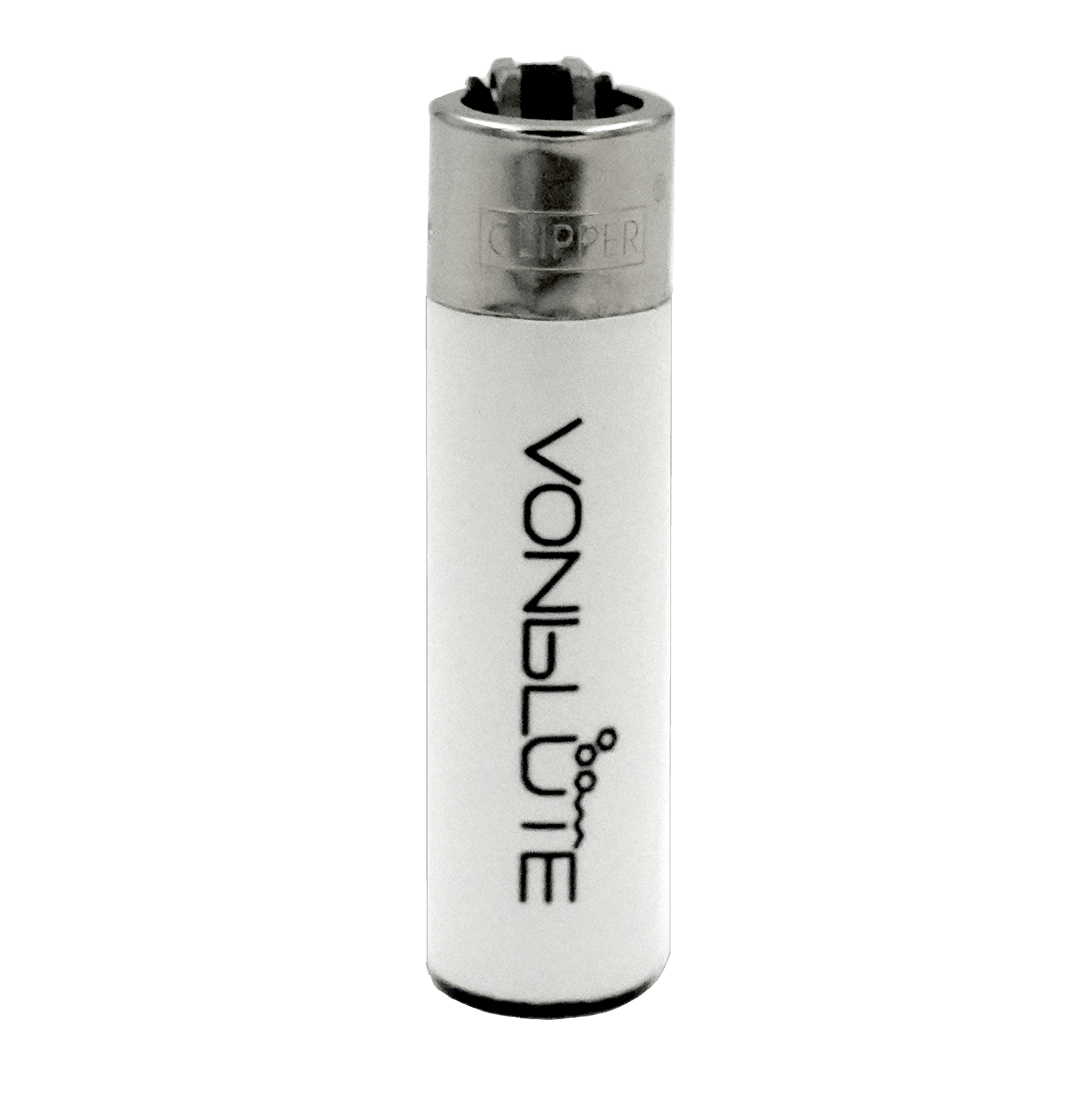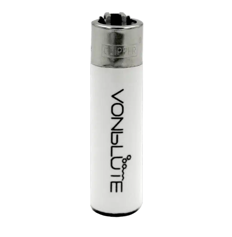 Das weiße Clipper mit schwarzem VONbLÜTE® Logo ist dein minimalistisches Feuerzeug für stilvolle Rituale – nachfüllbar, langlebig und ready to roll.